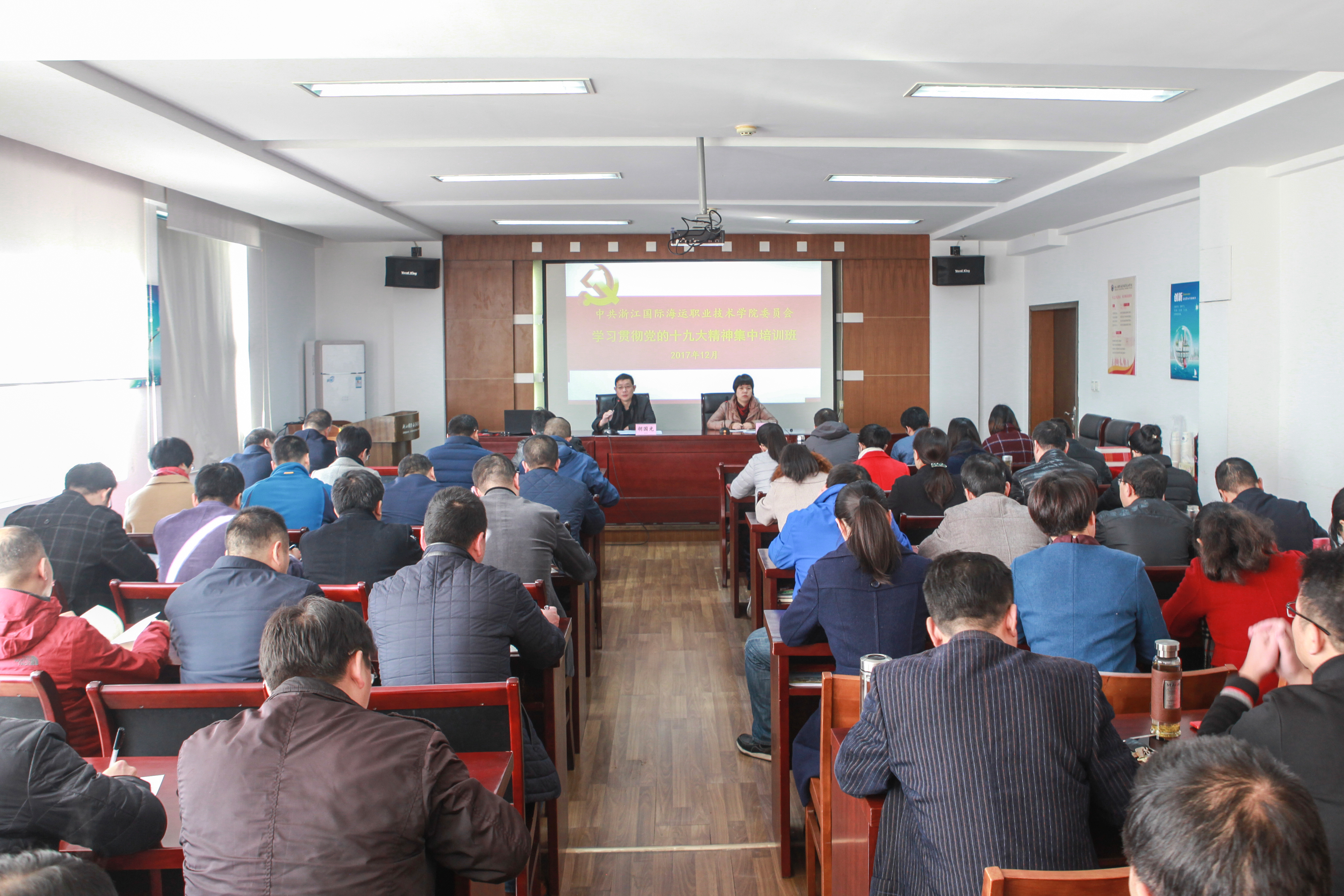自十九大开幕会以来,全校上下涌动着学习贯彻党的十九大精神的热潮。12月11日,学校中层干部学习贯彻党的十九大精神集中培训班在行政楼401开班,65名中层干部参加了本次培训。会议由学校纪委书记、组织部部长江爱芬主持。
