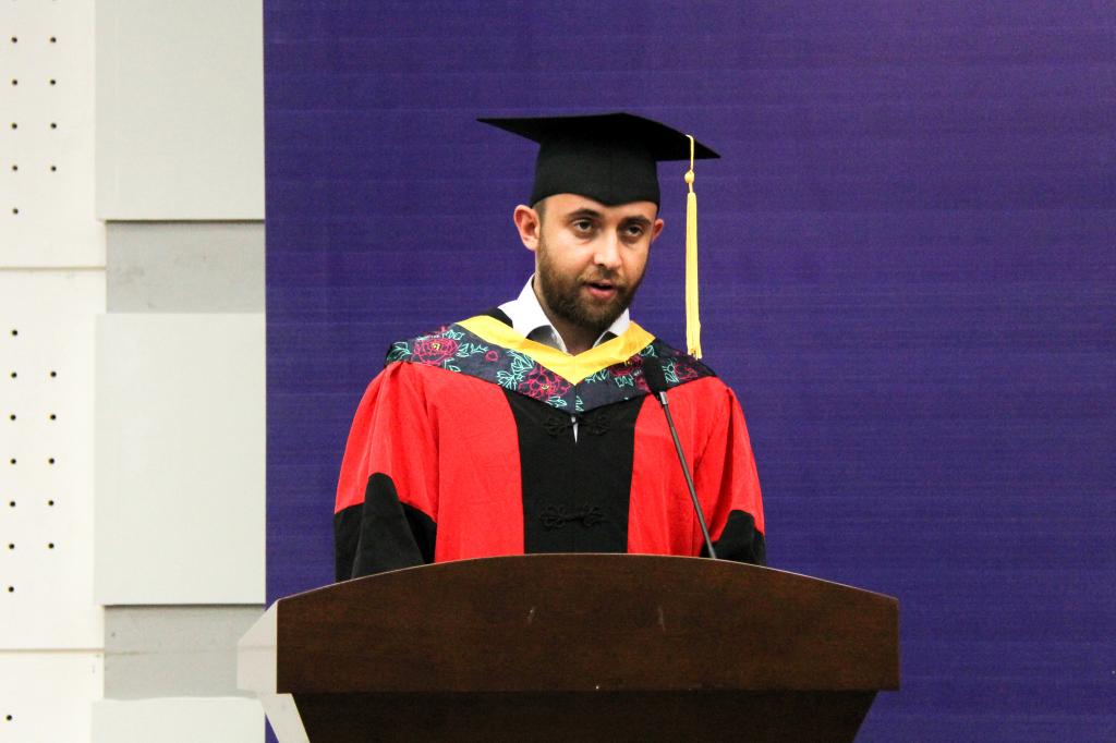 各二级学院优秀毕业生代表郑少奇、徐沛光、程哲、罗晨、陈淼宇;优秀教师代表黄华、李云、林说、朱亚珠、周红芬老师;优秀学生代表王宁、姚迪、杨凯杰、卢雷、娄荣跃分别在典礼上发言。师生们发自内心的致辞赢得了现场的阵阵掌声。