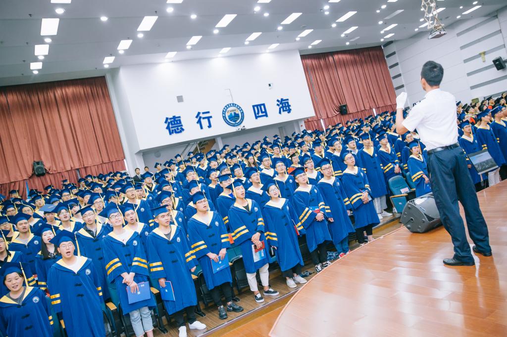 今年我校共有1857名应届毕业生,毕业典礼仍然分二级学院举行,航海工程学院、船舶工程学院、港口管理学院、海洋旅游学院和国际教育学院各为期半天,各二级学院院长主持典礼。上海华洋海事科技发展有限公司、常石集团(舟山)造船有限公司、顺丰速运有限公司、舟山财富君庭大酒店、舟山新爱婴早教中心等二十家合作企业的代表现场观礼,学校还通过大屏幕进行了现场直播。
