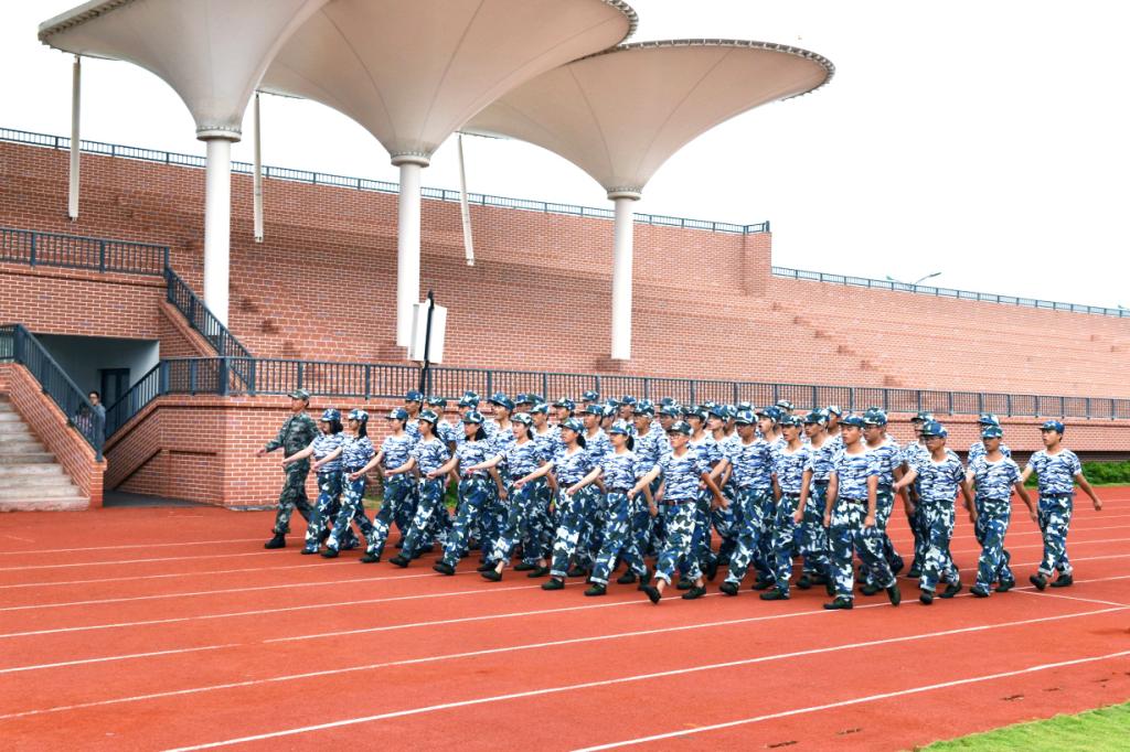 大会在升旗仪式中拉开帷幕。陈定樑副书记宣布军训会操正式开始。崭新的田径场上,同学们在教官带领下,逐项展示军训成果。立正、稍息、停止间转法、齐步走,各方阵的同学步履铿锵,目光坚定,身姿挺拔,一招一式,齐整划一,充满了青春向上的活力;整齐有力的动作构成了一道道亮丽的风景线。