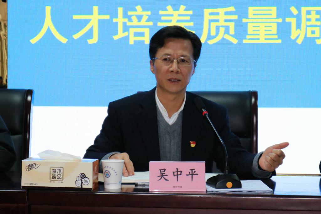 吴中平校长就做好全校2019年毕业生就业工作和跟踪调查工作提出了三点意见:一是在面对重重困难的前提下,依然能够取得今年的成绩给予充分肯定,并向为调查工作做出贡献的教师表示感谢。二是要高度重视毕业生职业发展状况及人才培养质量调查工作,巩固已有的成果,做到稳步提升,并确定2019年的新目标。三是要深入分析结果,进行科学运用,对调查结果要坚持问题导向、目标导向。要深入分析,查找差距,突出重点,采取措施,切实提高学生和社会对学校人才培养的认可度和满意度。