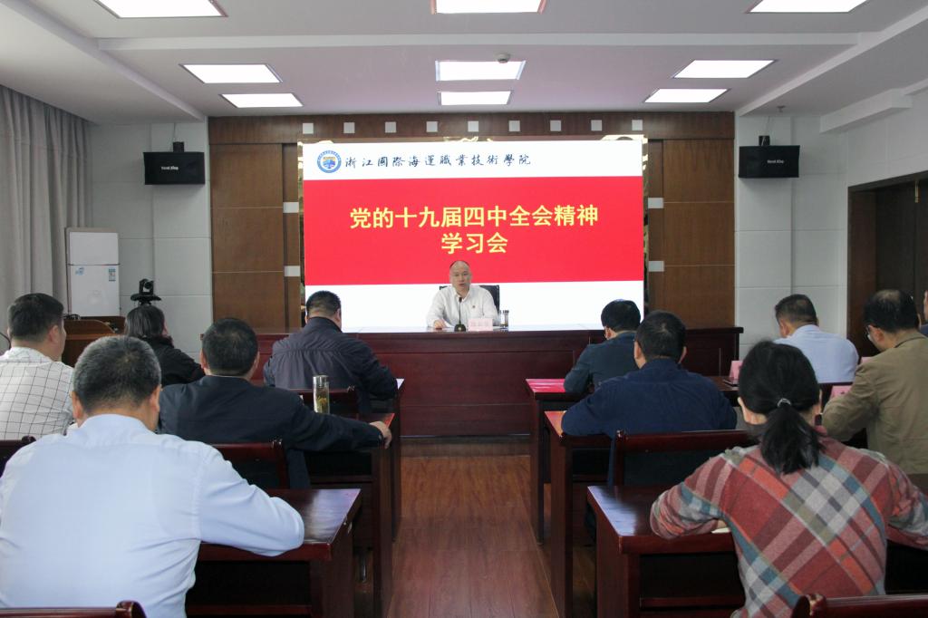 陈松华书记结合舟山市干部会议精神,联系学校实际,就抓好学习贯彻落实党的十九届四中全会精神提出了三点意见:一是要迅速兴起学习宣传贯彻的热潮,推动全校上下切实把思想和行动统一到党的十九届四中全会精神上来。二是要以党的十九届四中全会精神为引领,切实提高学校治理现代化水平。三是要把学习贯彻党的十九届四中全会精神同抓好当前重要工作紧密结合起来。