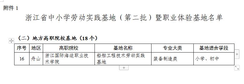 近日,浙江省教育厅办公室下发了《关于公布浙江省中小学劳动实践基地(第二批)暨职业体验基地名单的通知》(浙教办函〔2020〕307号)。在学校自主申报,县(市、区)和设区市教育局遴选推荐基础上,经审核,我校船舶工程技术劳动实践基地成功入选全省“浙江省中小学劳动实践基地(第二批)暨职业体验基地”名单。