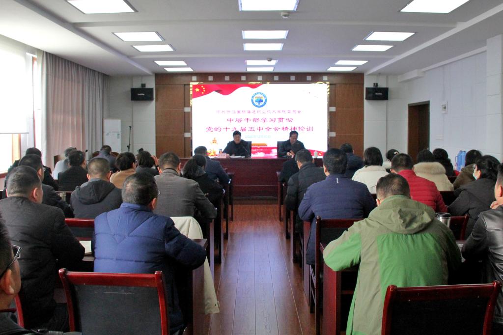 培训期间还邀请了中共舟山市委党校庄韶辉副教授和顾自刚副教授来校分别作了《开启全面建设社会主义现代化国家新征程——学习贯彻十九届五中全会精神》、《加快构建新发展格局 推动经济高质量发展》的专题宣讲报告。专题讲座主题鲜明、内容丰富、紧贴实际,深刻阐述党的十九届五中全会的重大历史意义,全面解读习近平总书记关于“十四五”规划建议的战略思想,为我校中层干部深入学习贯彻党的十九届五中全会精神提供了指导。