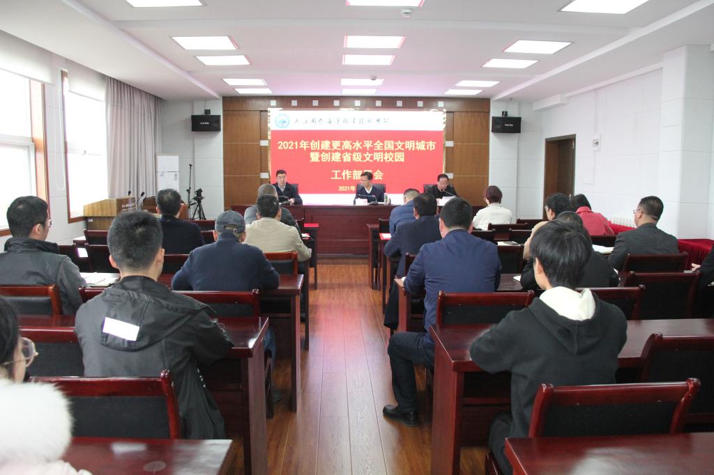 3月24日下午,学校在行政楼401会议室召开2021年创建更高水平全国文明城市暨创建省级文明校园工作部署会。校党委副书记、校长吴中平,校党委副书记孔志光,校党委委员、宣传(统战)部部长陈永芳,学校文明创建点位长、相关部门负责人和部分师生代表参加。会议由党委副书记孔志光主持。
