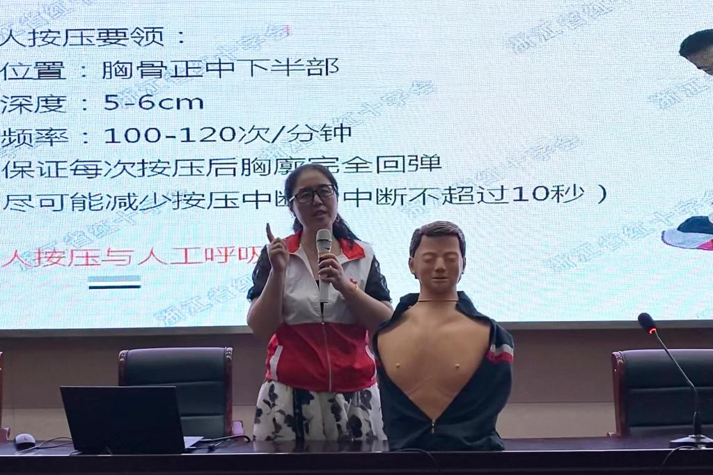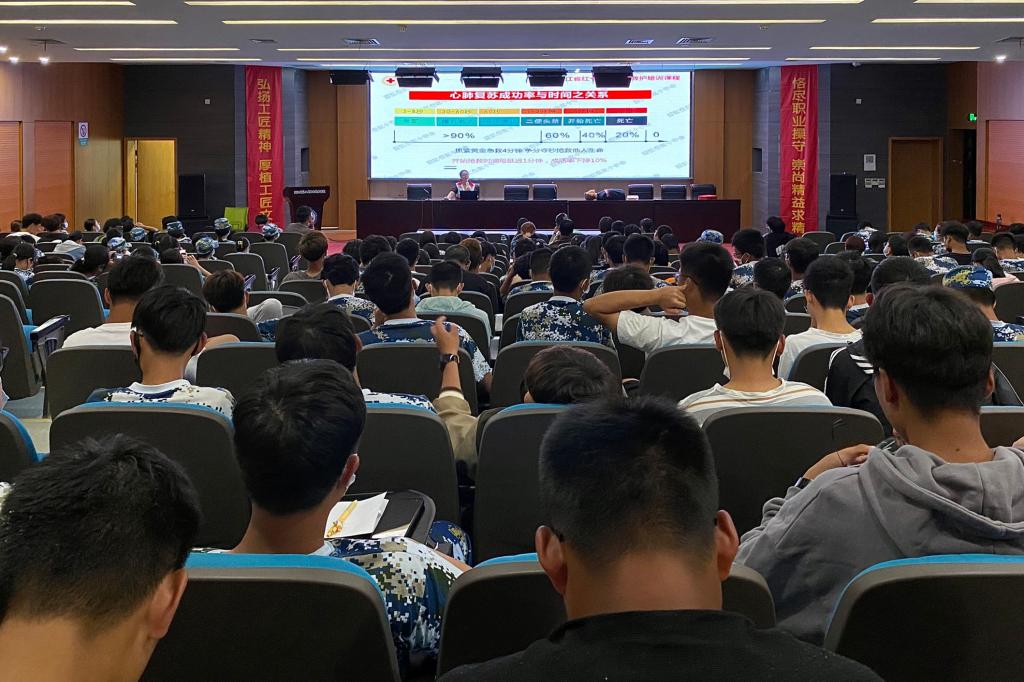 本次应急救护培训吸引了500余名学生参与。本次培训由岱山县红十字会急救培训人员授课,采用理论学习和操作演示相结合的教学形式,重点对心肺复苏CPR、AED使用等现场急救技能作了详细介绍,并现场演示对“模拟人”实施心肺复苏。通过培训、学院考核合格后由岱山县红十字会颁发培训证。