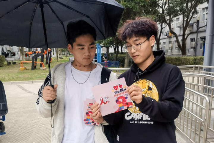 随后,志愿者们在校内以发放传单等形式开展了防艾滋现场宣传。