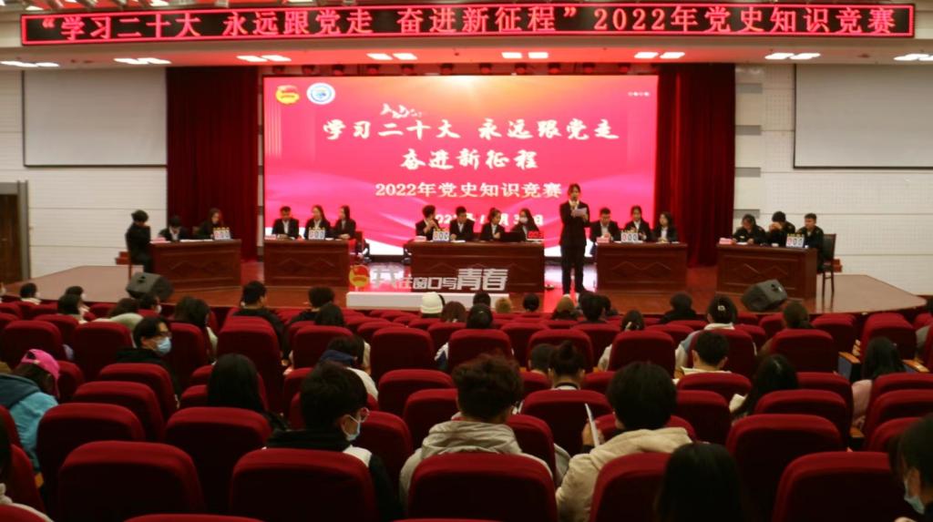 为深入学习宣传贯彻党的二十大精神,加强引导青年学子学习党的先进思想理念,11月30日,校团委组织“青年马克思主义者培养工程”学员在图书馆4楼报告厅举行了“学习二十大 永远跟党走 奋进新征程”党史知识竞赛。各二级学院均派出三名培训学员参赛,其余170余名学员在现场观看了比赛。