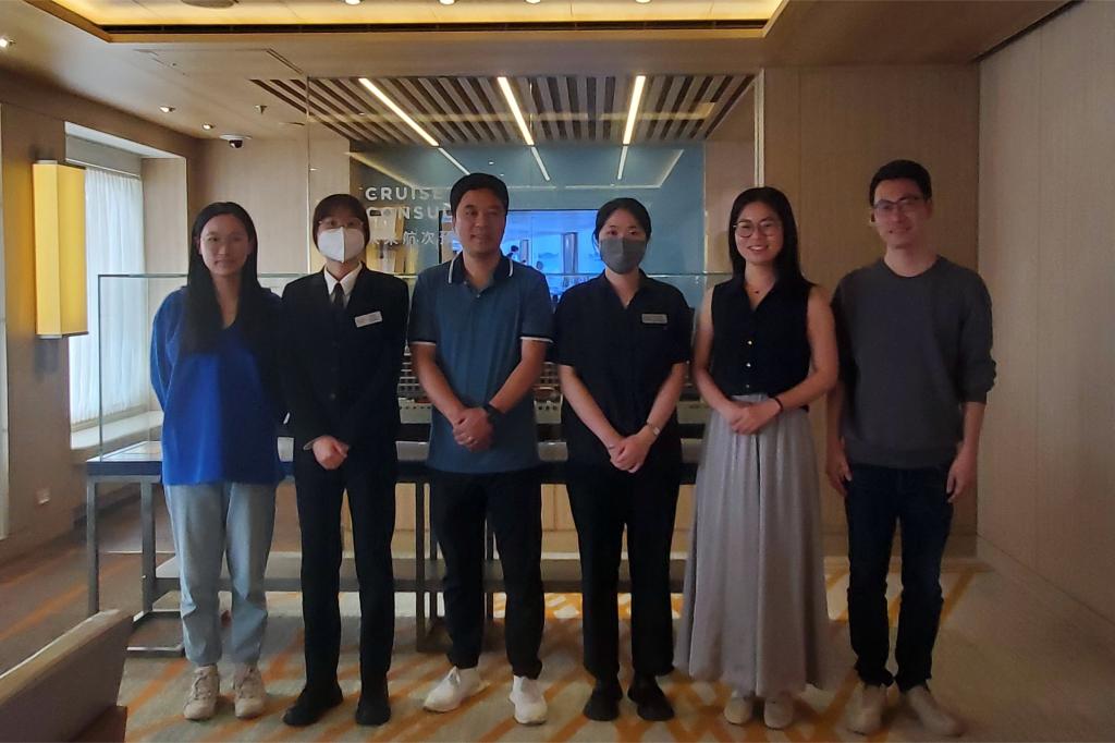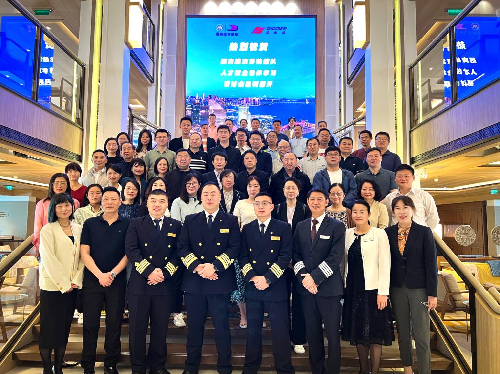 俞海平一行参加了由北京鑫裕盛船舶管理有限公司组织的招商维京邮轮船队人才校企培养学习研讨会,来自全国开设邮轮乘务管理专业的院校齐聚一堂,共同探讨交流专业人才培养与未来行业发展方向。会后,参会人员分组参观了招商伊敦号邮轮驾驶台、餐饮后厨等内部工作区域。