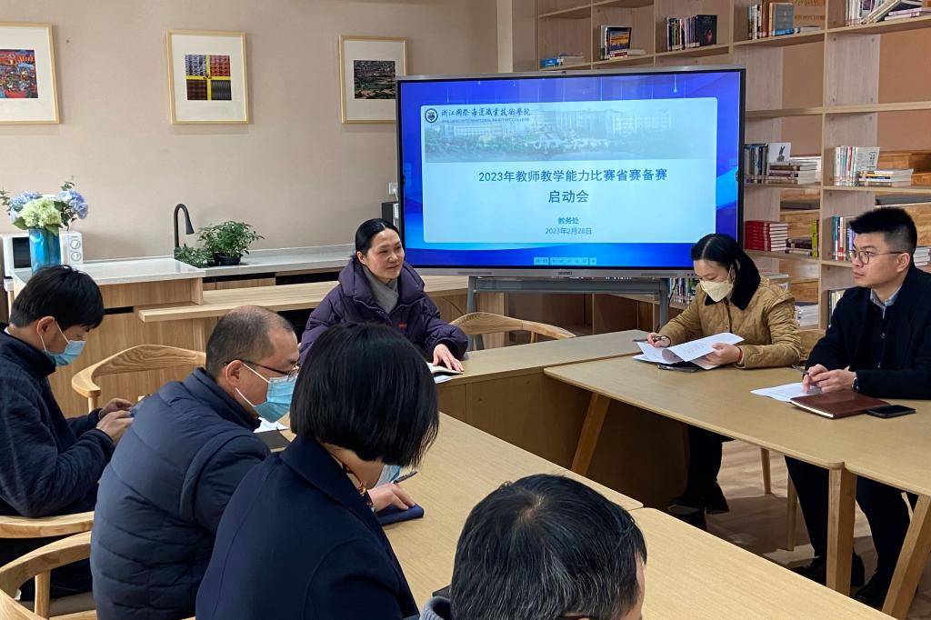 为深入贯彻落实立德树人根本任务,坚持“以赛促教、以赛促学,以赛促改、以赛促研”的理念,充分发挥教学比赛的示范引领作用,不断提高教学质量,助力学校高质量发展,2月28日下午,学校在教师发展中心共享空间召开了2023年教师教学能力比赛省赛备赛启动会,会议由教务处处长郑燕华主持,相关二级学院副院长、各参赛教师参加。