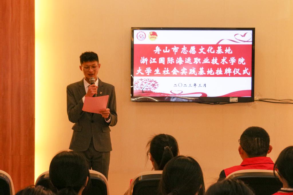 为进一步拓展我校学生的社会实践平台,引导我校广大学生勤于实践、勇于探索,校团委与舟山市志愿文化基地合作建立大学生社会实践基地。3月4日上午,挂牌仪式暨我校学雷锋志愿服务月启动仪式在舟山市志愿服务基地隆重举行。舟山市精神文明指导中心综合处二级主任科员、舟山市志愿服务联合会秘书长马玉鲁、校团委副书记余娜娜及大学生志愿者参加。