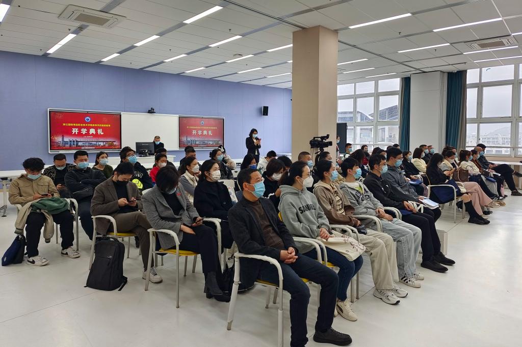 会上,夏志刚副校长代表学校向全体学生致以热烈欢迎和衷心祝贺,并对学校的办学经历和办学特色进行了介绍。他指出,继续教育是学校人才培养和社会服务的重要形式,是学校教育事业的重要组成部分。学校遵循习近平总书记视察学校时的重要指示精神,坚持“国际化、应用型、地方性”办学定位,坚持“立足舟山、服务浙江、面向海内外”办学方向,紧紧围绕国家重大战略和地方经济社会发展,全面对接产业需求,全面提高人才培养质量,培养了一大批高素质技术技能人才,在服务社会和推进行业发展中发挥了重要作用,赢得了良好声誉,产生了广泛影响。从建设全民终身学习教育的角度对同学们提出了四点希望与建议:一是希望同学们志存高远,胸怀天下;二是希望同学们磨砺品格,提升素养;三是希望同学们善于学习,守正创新;四是希望同学们学用结合,担当干事。