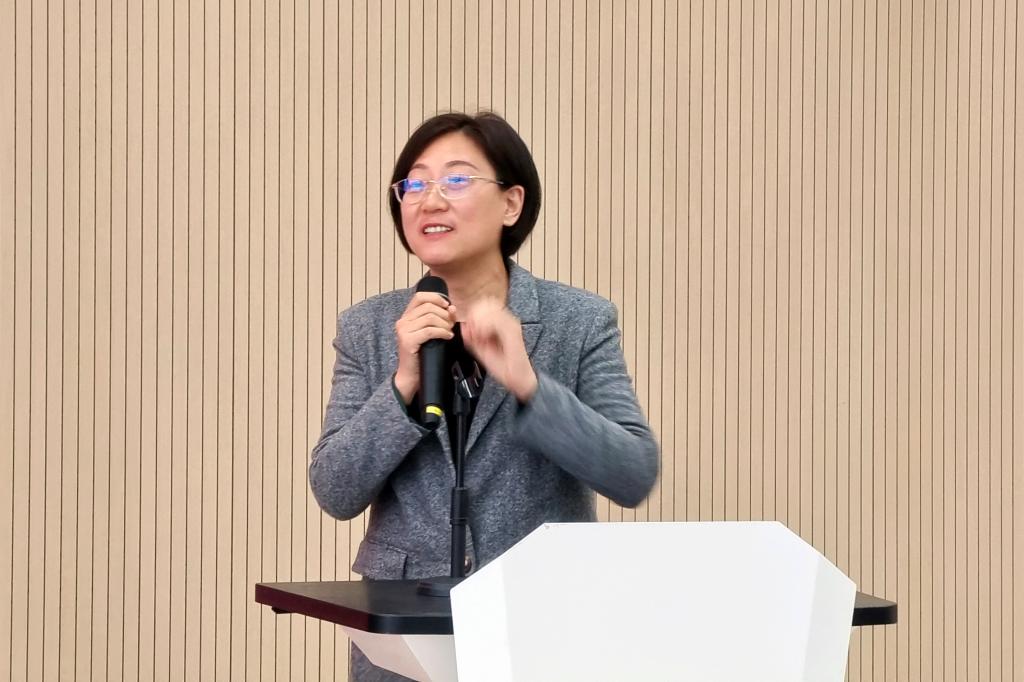 浙江省师德先进个人、学校马克思主义学院副院长刘笑菊教授代表教师发言,鼓励同学们以空杯的心态投入学习,积极践行终身教育理念,将所学知识和工作实践相结合,在各自岗位上发光发热。