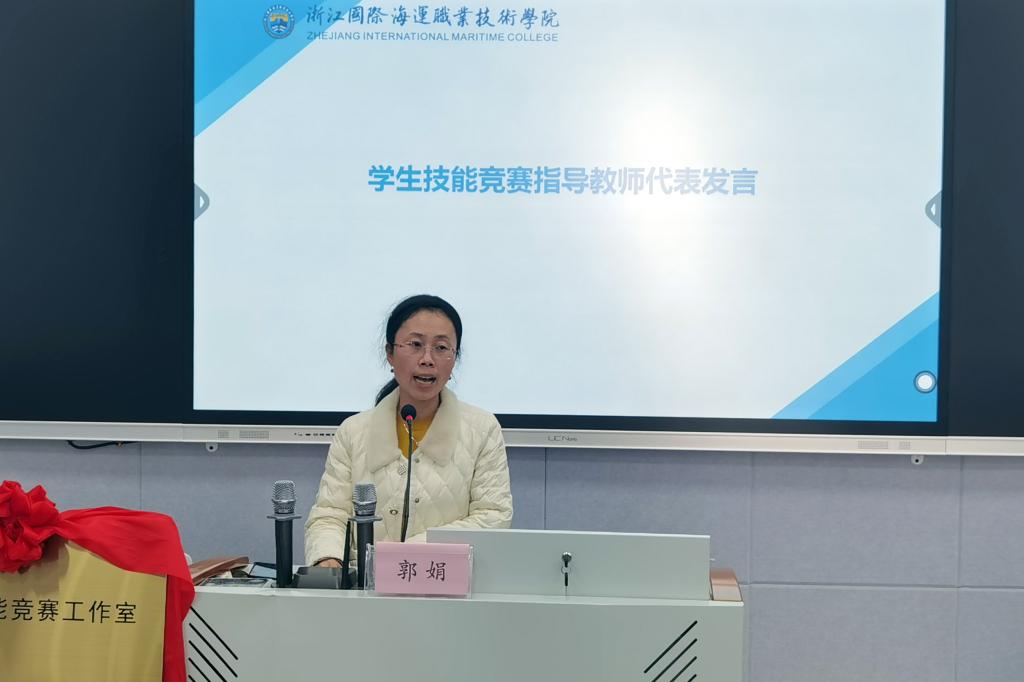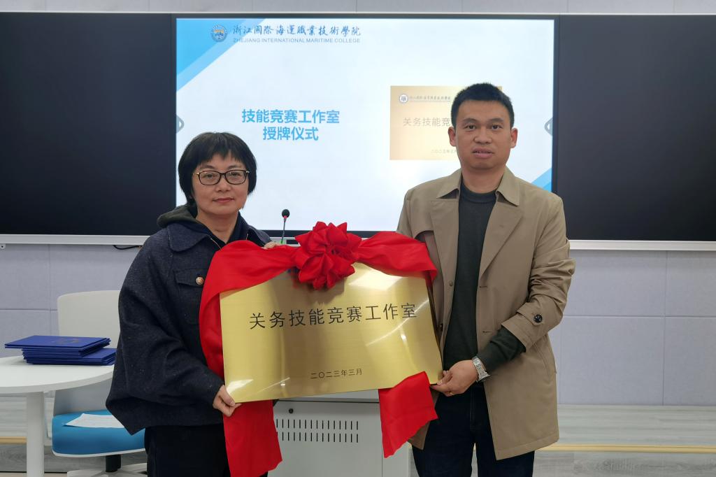 教务处处长郑燕华宣读了“关务技能竞赛工作室”的授牌和今年新增赛项指导教师的聘任名单。李丽副校长为港口管理学院关务技能赛项指导老师刘秋民、朱小丽的“关务技能竞赛工作室”授牌,为今年新增赛项“物联网技术应用”、“导游服务”、“矿井灾害应急救援技术”的相关指导老师颁发了聘书。