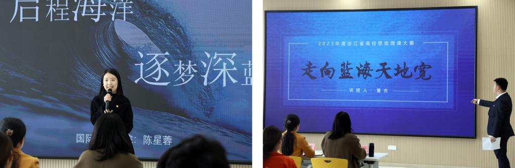 本次比赛分为红色教育故事、发展成就故事和青春奉献故事三个主题,教师组与学生组的选手们围绕三个主题与舟山发展相结合,展示了一堂堂“有深度、有态度、有高度、有温度”的思政微课,充分展现了海运师生青春朝气、踔厉奋发朝气的精神风貌,传递了海运青年追梦青春、砥砺前行的时代风采。