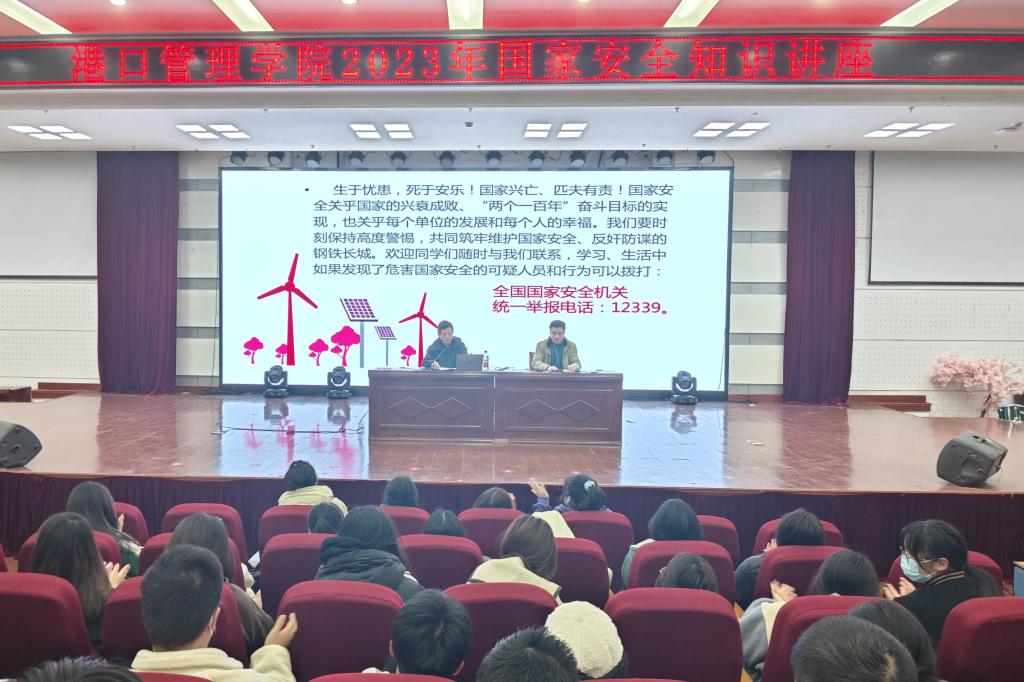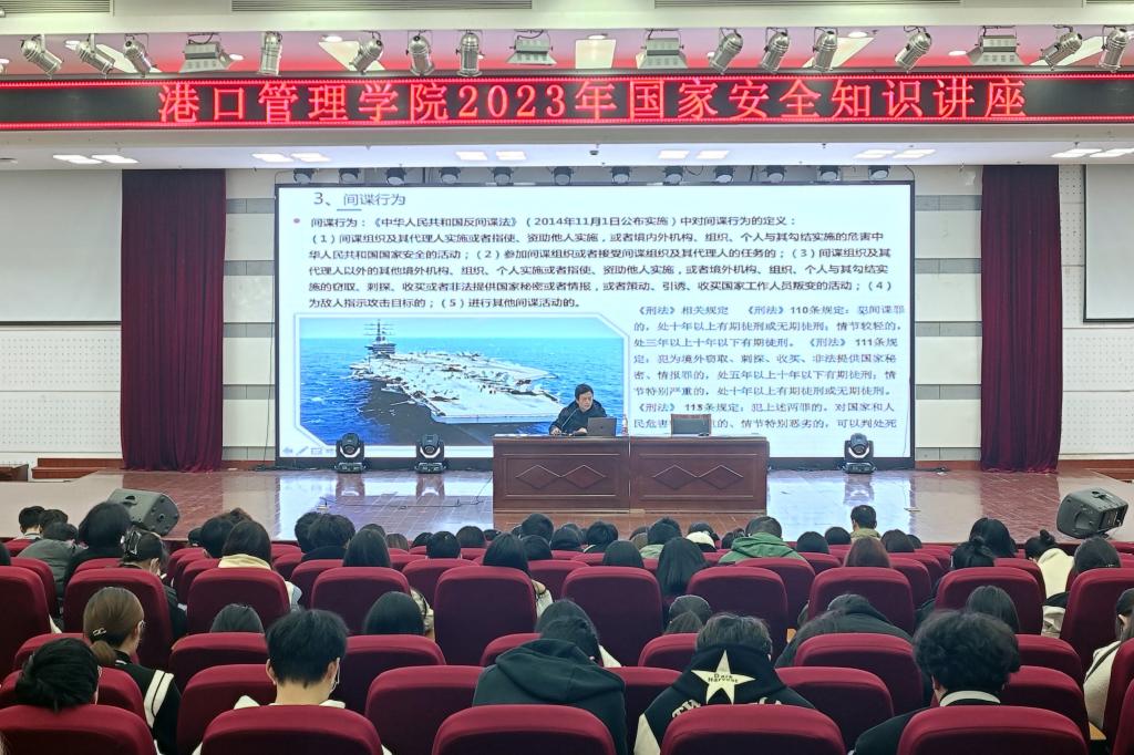 为深入学习宣传党的二十大精神,贯彻落实党的二十大报告中关于“增强全民国家安全意识和素养”的部署要求,持续开展好国家安全宣传教育,3月22日下午,港口管理学院特邀定海区政法委副书记虞平华为2022级学生讲解了国家安全知识,港口管理学院党总支书记吴平波主持会议。