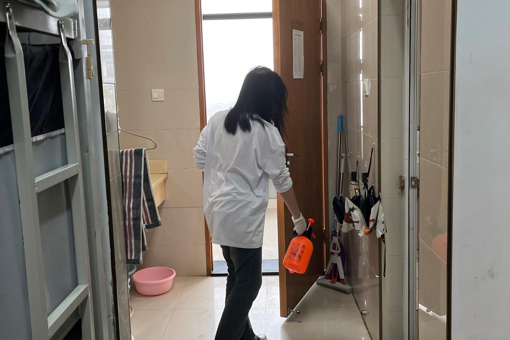 消杀过程中,同学们严格按照消杀要求,安全操作,做到全覆盖、无死角,事后及时开窗通风,保持居住内外环境干净整洁,确保学生进入宿舍安全。