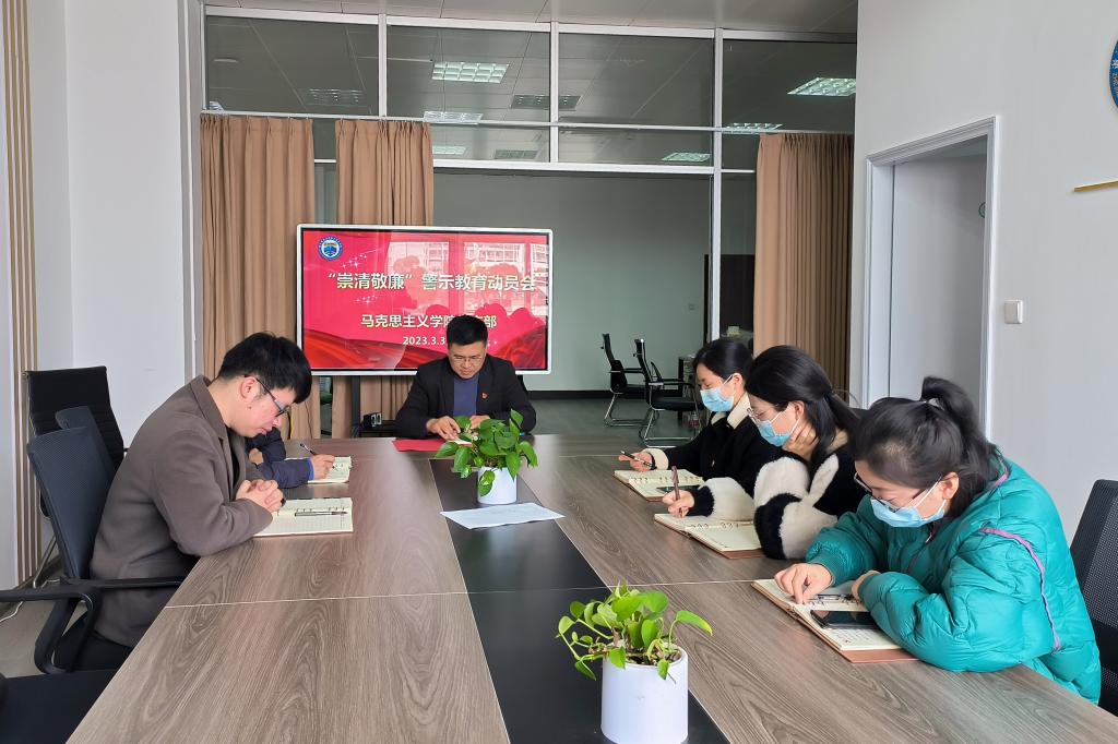3月31日下午,马克思主义学院召开党风廉政责任书签订会议。会上,郑忠义院长传达了校党委书记苏为泽在学校2023年全面从严治党暨党风廉政建设工作会议上的讲话精神,对2023年学院党风廉政建设提出了具体要求。他要求全体教职工提高政治站位、加强理论学习,把纪律和规矩挺在前面;把提高思政课质量和满意度作为关键任务来抓。