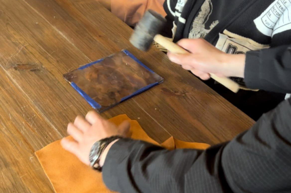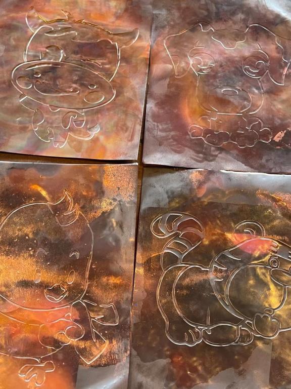 翁海星大师向同学们系统讲解了铜雕的制作工艺流程,从如何在铜板上打出图案,到如何变的凹凸有致,再到如何雕刻细节,让同学们对铜雕有了更进一步的认识。在他的指导下,同学们制作出了惟妙惟肖的生肖铜雕作品,零距离的体验让同学们深切感受到铜雕的魅力和深厚的文化底蕴。