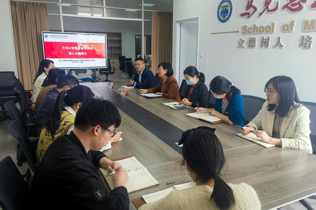 来自浙江工商职业技术学院马克思主义学院党总支书记、副院长靖国华副教授一同参加座谈会,并对我校马院建设、大中小学思政课一体化工作、思政课教师教学竞赛、校外实践基地教学方式提出指导意见。