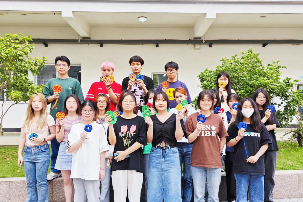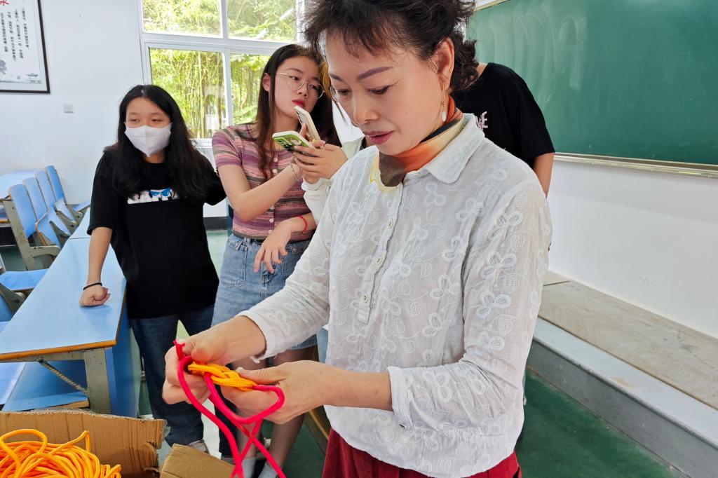 在开展活动前,现代港口贸易学院特邀了舟山市非遗文化传承人李芝琴女士在校内给志愿者们进行培训,学员们认真且耐心,完成了渔绳结作品的编织。