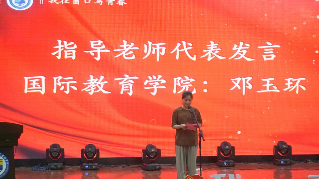 国际教育学院邓玉环老师作为暑期社会实践队指导教师代表,表达了必将履行好职责,做好青年学生的服务员,当好实践队伍的安全员的决心。