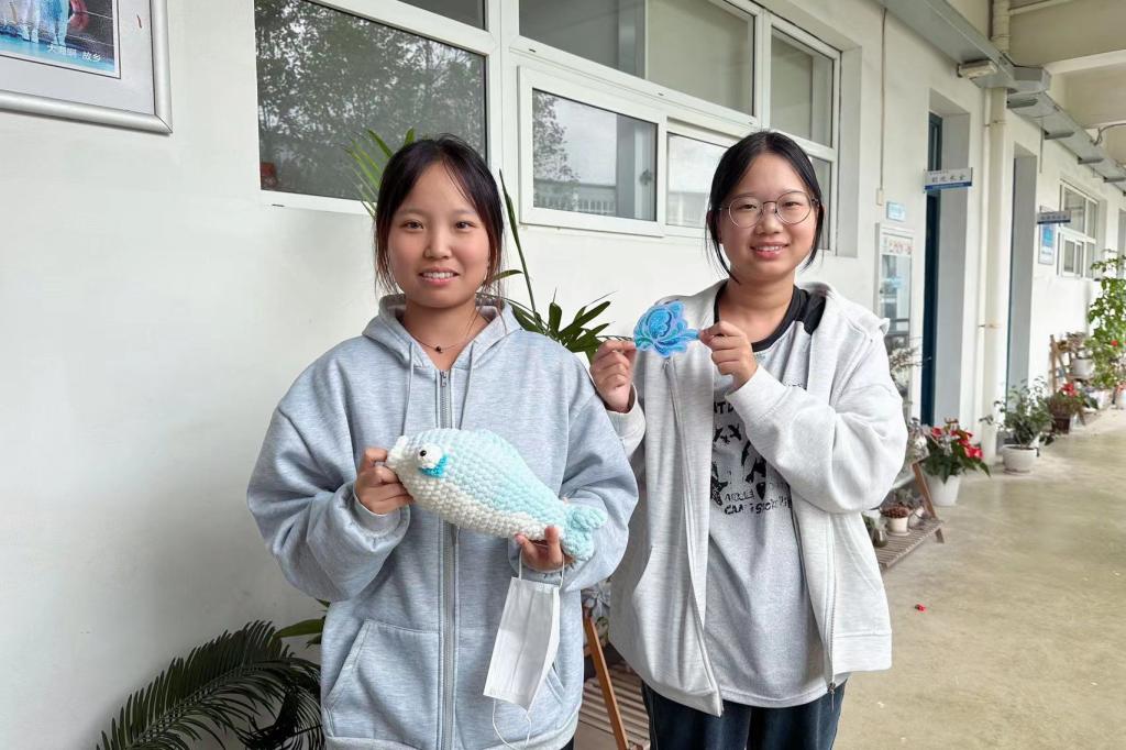 同学们利用各式各样的材料制作与蓝色海洋主题相关的作品,有一针一线编织出的海洋动物,有一笔一划描绘出的壮丽海景,有细心串联出的贝壳挂饰,有精心设计的折纸作品,还有手工制作的黏土装饰画。