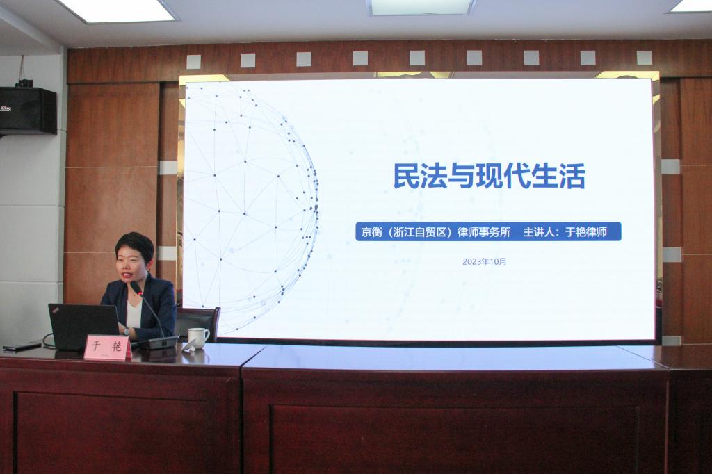 浙江京衡(浙江自贸区)律师事务所律师于艳应邀为大家讲授《民法与现代生活》专题讲座。2020528日,十三届全国人民代表大会三次会议审议通过了新中国历史上首部民法典。民法典的颁布对于完善中国特色社会主义法治体系,推进国家治理体系和治理能力现代化,推进全面依法治国,切实维护好最广大人民的根本利益,促进社会公平正义具有重要意义。