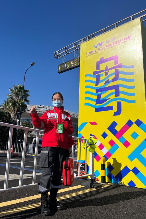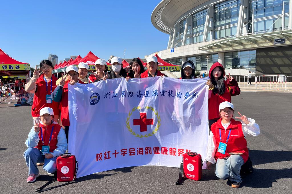 我校红十字会海韵健康服务队金曙敏医生负责AED医疗保障与20余名学生志愿者负责其他保障工作共同“保驾护航”舟山马拉松,做好舟山马拉松赛事应急救护和其他保障资源志愿服务工作,确保赛事成功举办。