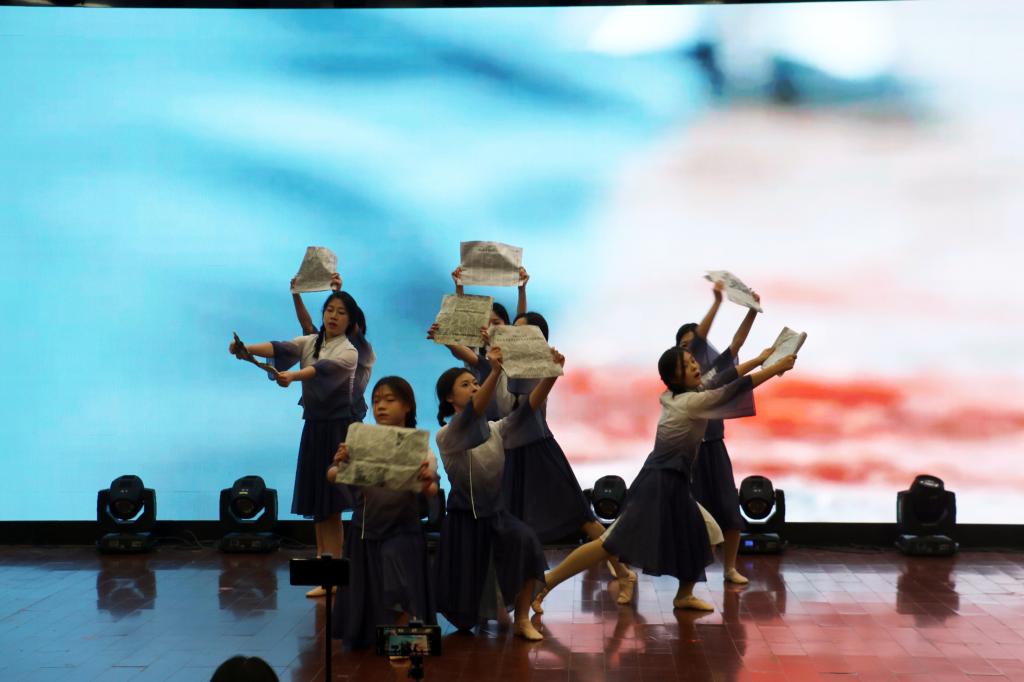 舞台剧、快板、二胡独奏等精彩节目轮番上演。校团委的《战火中的大学生》讲述了卢沟桥事变后国立西南联合大学的学生们在战火中学习、成长、经受考验,最终成长为抗日救亡中坚力量。交投集团张东明带来的二胡独奏《赛马奔腾》仿佛瞬间让同学们感受到了将士挥戈、万马奔腾的气息。广播站带来的《党的二十大报告竹板词问答》、交投集团带来的歌曲《我的中国心》寄托着新时代的青年们对祖国的美好祝福和对未来的向往。