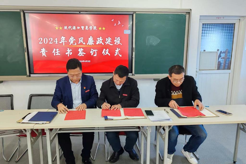 会上,现代港口贸易学院领导班子签署了2024年度学院党风廉政建设责任书。
