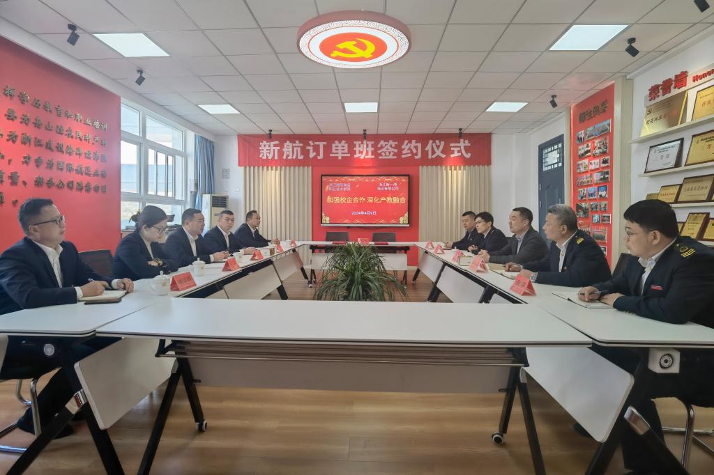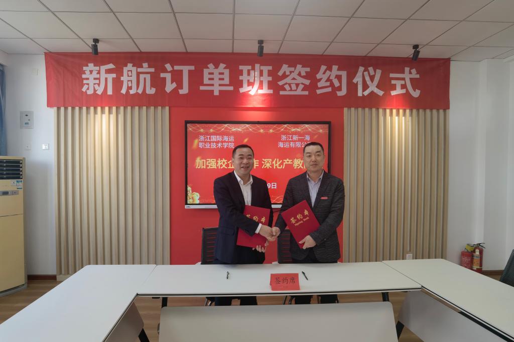 为共同培养符合海运业需求的高素养专业技能人才,推动职业教育与企业需求的无缝对接,4月9日上午,我校与浙江新一海海运有限公司签订“新航”订单班合作协议。浙江新一海海运有限公司党委书记、董事长张辉,党委委员、纪委书记、工会主席周勇,校党委委员陈永芳、航海工程学院院长汪益兵出席签约仪式。