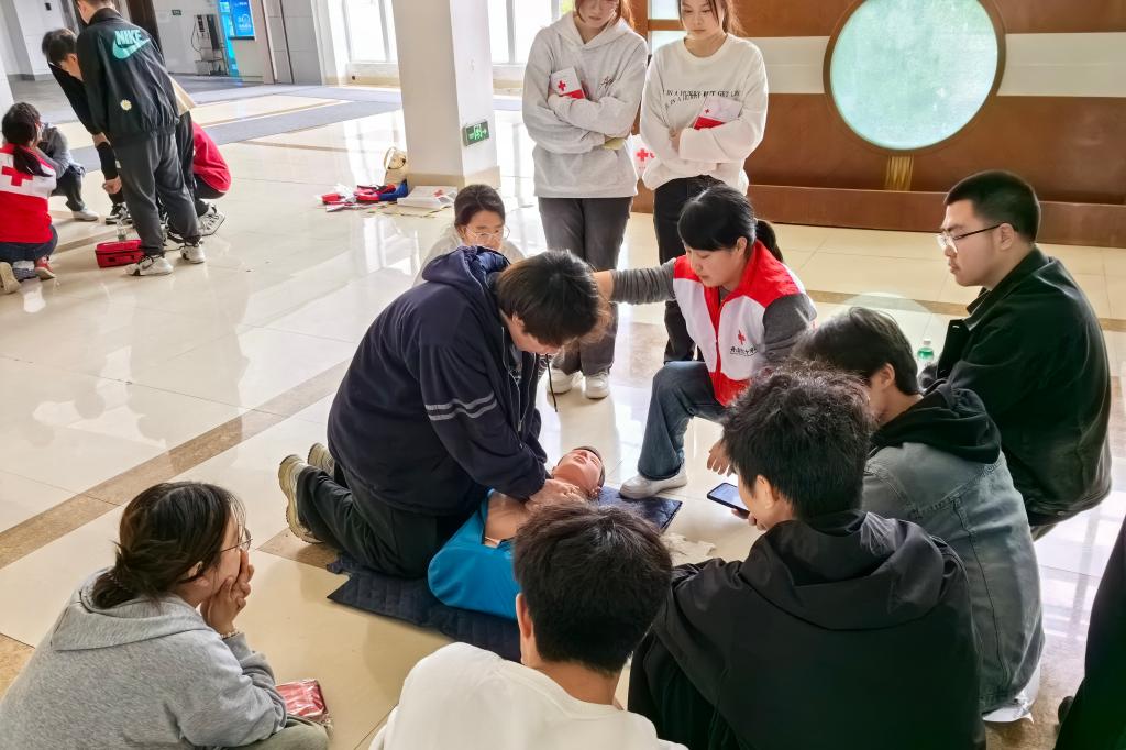 现场还进行了理论和实操考核,考核合格者将颁发红十字救护员证。此次培训获证学生将由各二级学院选拔参加5月8日举行的校级大学生急救比赛。