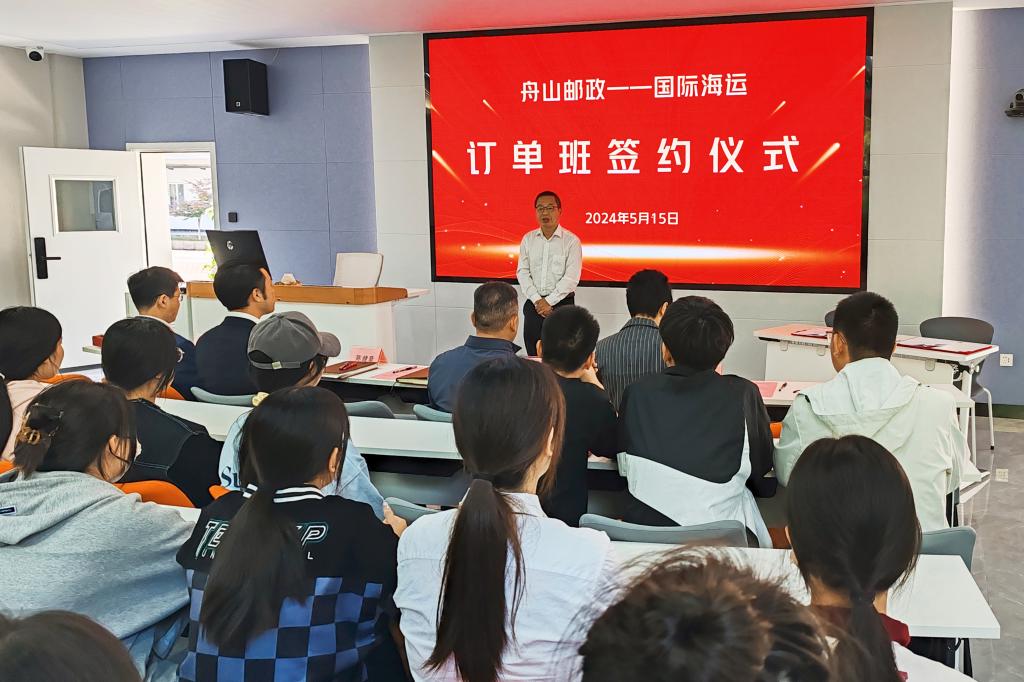 515日,舟山邮政海运订单班签约仪式在海德楼117教室隆重举行。此次签约标志着学校与舟山邮政分公司在人才培养领域正式建立合作伙伴关系,双方将共同打造“订单班”,为行业输送高素质的专业人才。