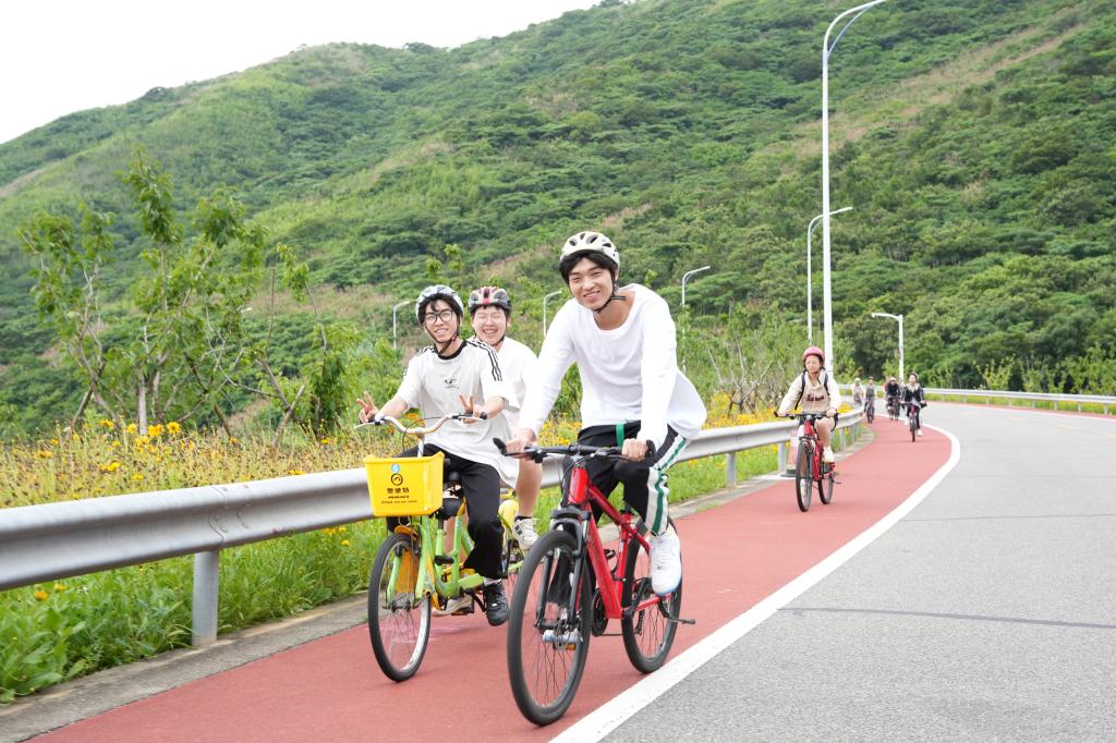 在初夏的微风中,四十余名同学从岱山海岬公园骑行驿站出发,沿着海岸线骑行5公里前往沙滩营地。大家带上工具来到海滩参加净滩行动。烟蒂、玻璃碎片、瓶盖、渔网、塑料袋……大家认真搜寻,发现了不少在沙滩上或被浅埋于细沙之下的垃圾,同学们沿着海岸线清理随潮水涨落滞留在沙滩上的垃圾,一个个忙碌的红色身影成为海边一道亮丽的风景线。大家漫步在沙滩之上,感受海风的吹拂,享受大自然的宁静与清新,最后一起骑行返程,欢快的歌声萦绕着驿站。