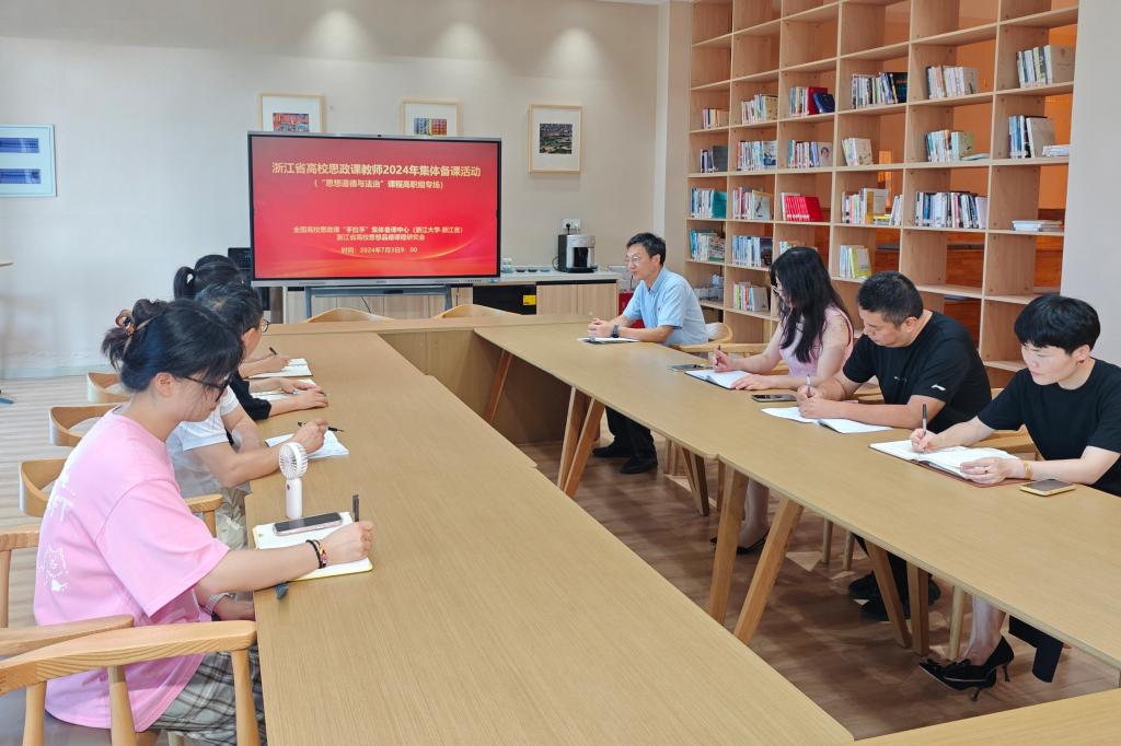 7月3日上午,马克思主义学院在学校图书馆共享空间(教师发展中心)组织教师参加思政理论课暑期集体备课会,全体教师共同观摩了浙江省高校思政课教师2024年“思想道德与法治”课程高职组专场。