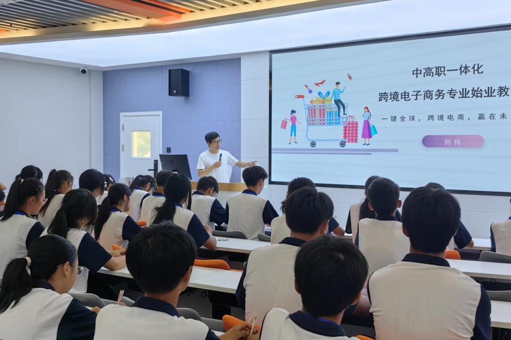 为加强中高职无缝衔接,共育职教人才,引导首届跨境电子商务专业中高职一体化班级学生更好地上好职校学习生涯的“第一课”,9月4日上午,舟山职业技术学校港口物流部2024级跨境电商专业37名新生及专业教师团队来我校研学交流。