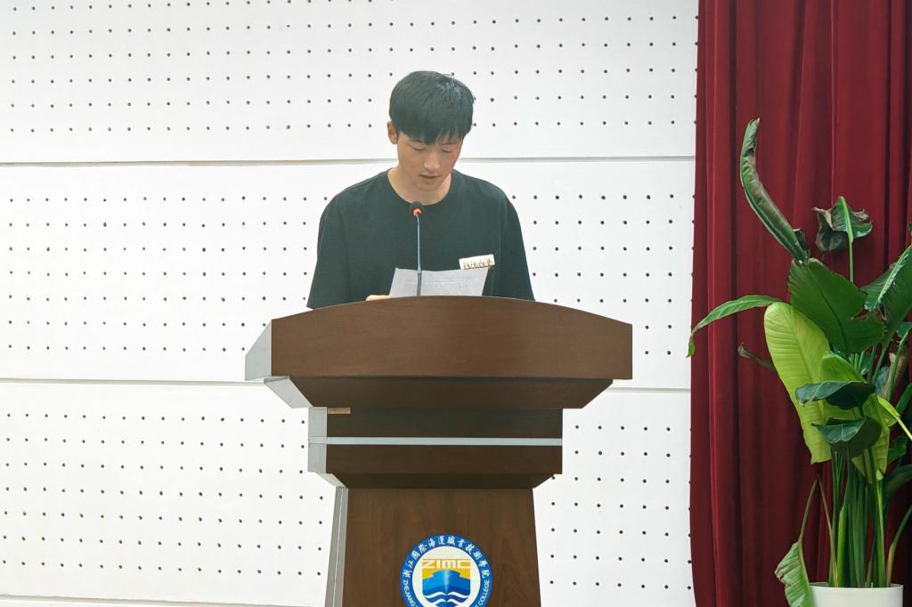 朱杰老师代表全体教师发言,他希望每位同学都要珍惜时光,勤奋学习,坚持不断提高和完善自己,努力成为栋梁之材。