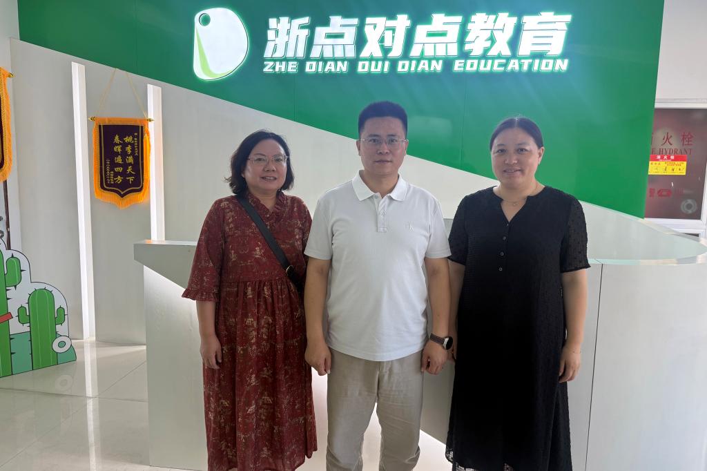6月28日,虞艳娜副书记和高芳老师走访了舟山点对点教育集团,肯定了学生专业素养,建议提升教育创新与课程设计能力。