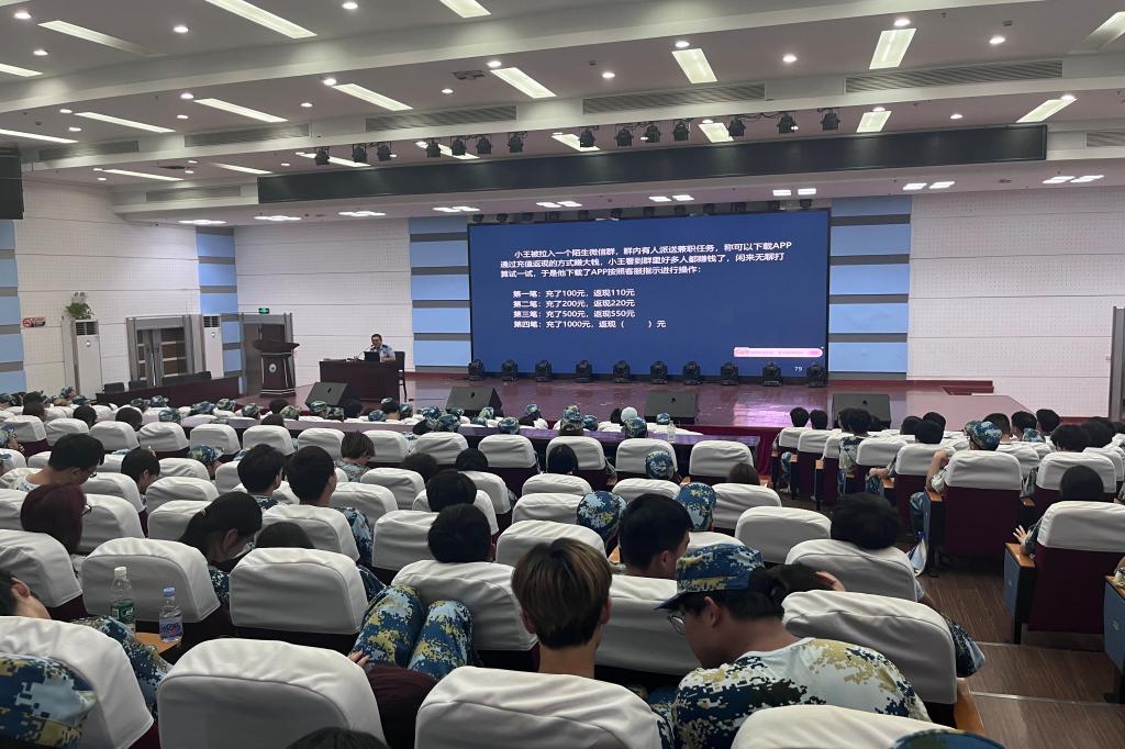 为进一步增强学生反诈意识,提高防范电信网络诈骗能力,9月15日下午,学院组织新生参加了反诈知识讲座,讲座由新城公安分局王警官进行主讲。王警官结合工作中发生的典型电信诈骗案例,通过视频、图片等向同学们详细讲解了冒充熟人诈骗、虚假网络游戏交易、虚假购物、兼职刷单、投资理财、冒充身份等针对学生群体高发的诈骗类型,展示了诈骗分子精心设计的陷阱,提醒同学们陌生链接不轻易点击、个人信息不透露、转账汇款多核实。