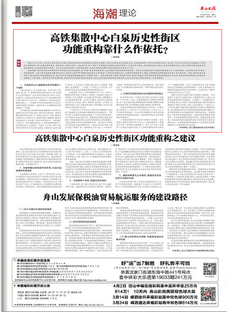 《舟山日报》:高铁集散中心白泉历史性街区功能重构靠什么作依托?