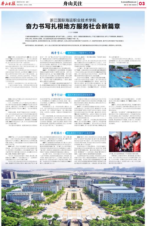 学校成立近20年来,始终坚持面向大海,立足本职,服务地方,为舟山经济社会发展培育了大批优秀人才,为城市有机更新、海洋文化传承提供了强大的智力支持。