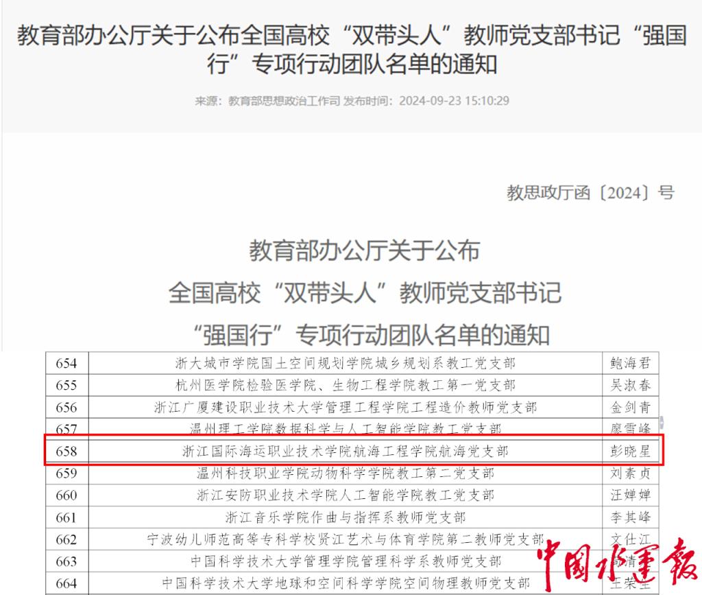 航海党支部“双带头人”书记工作室是一支富有创造力、战斗力的团队。支部结合航海技术专业群特点及党员教师专长,充分发挥基层党组织战斗堡垒作用,在学科建设、教学改革、科学研究、人才培养、社会服务和专业技术攻坚等方面成果丰硕,成效显著,取得了瞩目的成绩,为学校高质量发展奠定良好基础。下一步,该工作室将进一步凸显专业优势,通过党建合作、技能培训、教学改革、课程建设等方式,与中职航海类学校、省市海事局、船检部门等合作,齐心攻克船舶通信导航关键技术难题,带领师生深入企业一线开展实习、社会服务和技术攻关,有效推动校地融合发展,形成“强国行”专项行动的典型工作案例。