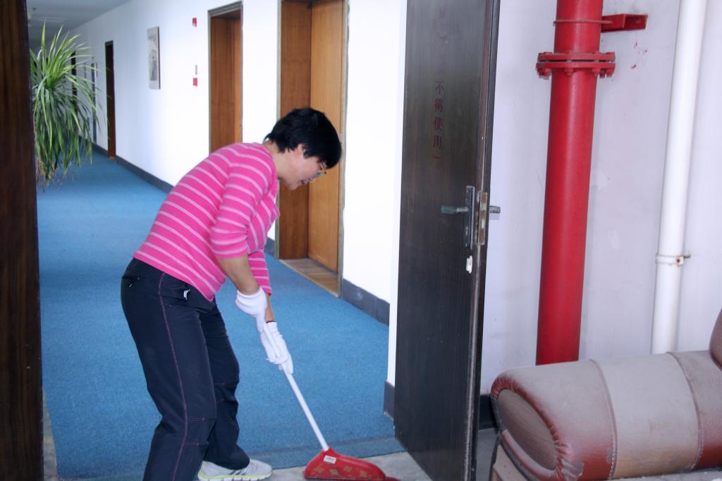 学校办公室根据行政楼实际情况,仔细梳理待清理项目,充分发挥性别优势,将行政人员分成三组,一组负责行政楼内护栏、玻璃、装饰画、盆栽、消防箱、应急通道等的清洁工作,一组负责行政楼内报废货物和杂物等搬离工作,一组负责行政楼周边草坪烟蒂、白色垃圾、排水沟等清理工作。在大家的共同努力下,经过整整3个小时的打扫,行政楼内部及周边环境焕然一新。