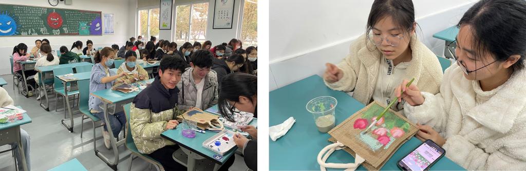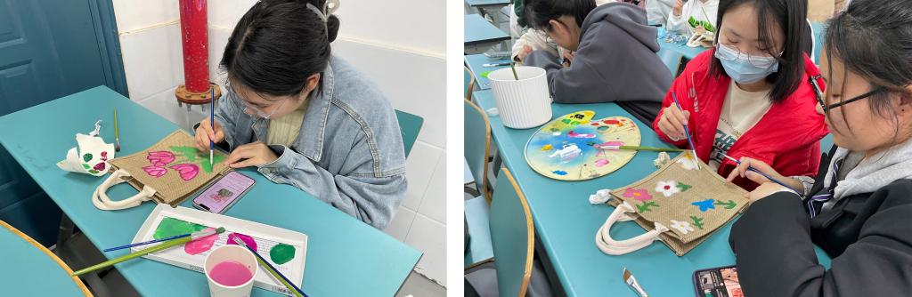 25日上午,学生志愿们在教室里两两组合,围绕活动主题,充分发挥自身想象力,将爱护地球、保护环境等系列元素描绘在布袋上,将一个个不起眼的袋子创作成设计感十足、时尚环保的个性袋。