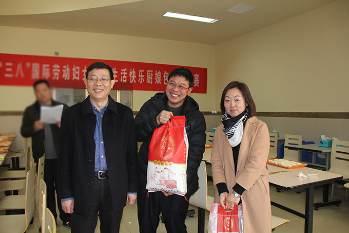 早上九点不到,厨娘们就纷纷来到了活动现场,在十点正式比赛之前进行热身。大家相互切磋,相互学习,气氛热烈,欢声笑语不断。十点十分,包饺子比赛正式开始,各二级工会推荐3名代表,在五分钟内较量各自的手艺。比赛设一等奖1名,二等奖2名,三等奖5名。通过评委对选手包饺子数量和质量的综合评分,教育图信工会王海玲获得一等奖。校党委副书记胡国光,校党委委员组织部长江爱芬为获奖选手颁奖。