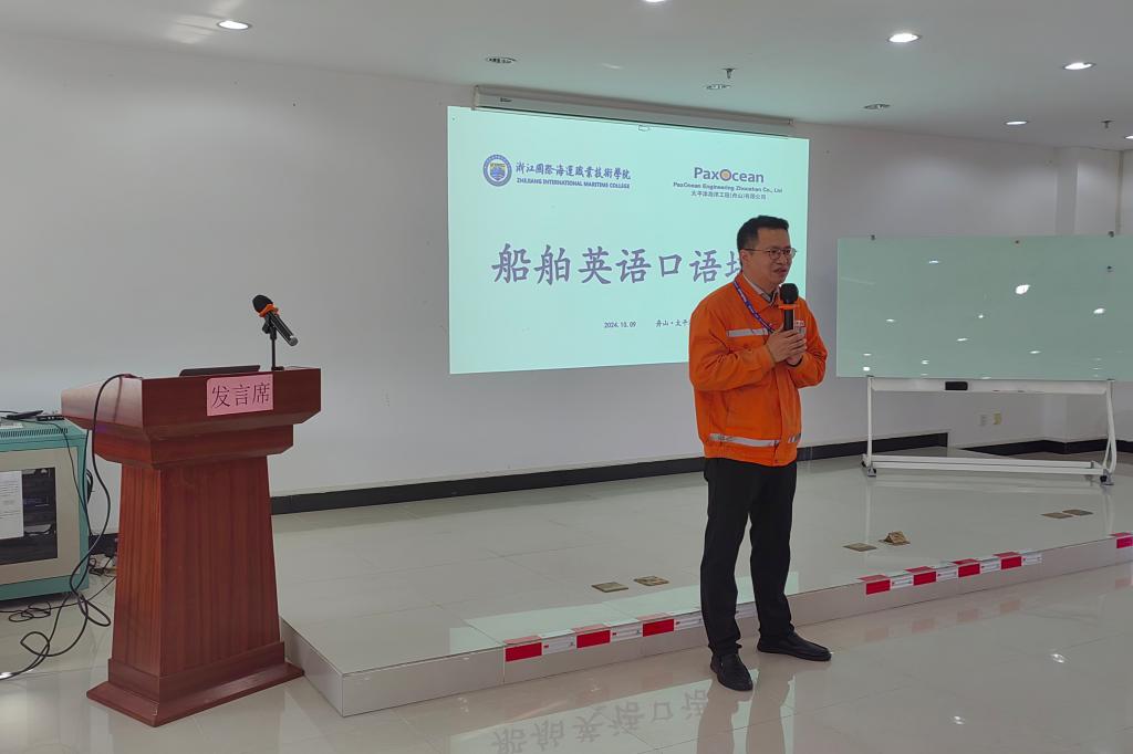 10月9日下午,受太平洋海洋工程(舟山)有限公司委托,由国际教育学院牵头,海洋装备工程学院教师共同参与的船舶英语口语培训班顺利开班。国际教育学院院长吴旭光、学院应用英语专业负责人高芳应邀出席开班仪式。